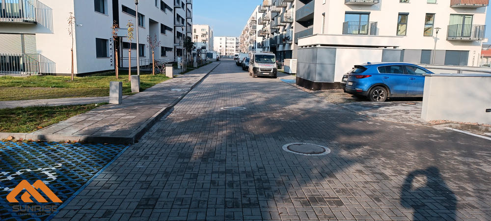 Kostka brukowa na chodnikach i jezdniach na osiedlu